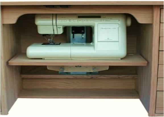 * The plexiglass insert is custom cut to your sewing machine head for the flatbed sewing position. If you decide to upgrade to a different machine, no problem. A new insert can be cut and the cabinet top will not be affected.